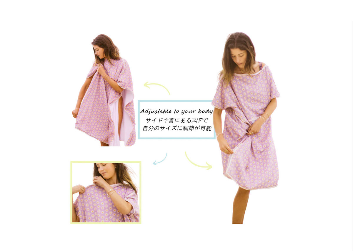 今までにあったタオル地のポンチョとは違い、薄くて軽いのも特徴です。